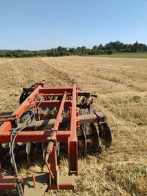 Par ailleurs Flo vient de déchaumer. Mais quèsaco le déchaumage ? Lorsque la moissonneuse est passée il reste dans les champs le bas des tiges et les racines, le déchaumage consiste à déraciner ces résidus ‘les chaumes’ en retournant la terre en surface (sur une quinzaine de centimètres de profondeur).