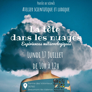 Ateliers scientifiques Pousses de Science pour les enfants de 6 à 12 ans 💡Lundi 17 juillet de 10h à 12h : la tête dans les nuages, expériences météorologiques 💡Mardi 18 juillet de 10h à 12h : science au soleil, à la découverte du système solaire inscriptions et informations : poussesdescience@gmail.com ou au 06.88.43.03.60